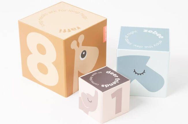 Doe mee met de herten Friends in het spel. Stapel de dobbelstenen op, draai ze om en verberg er kleine dingen in. Met de stapeldobbelstenen kunnen de kleintjes de getallen leren en tellen. De acht kleurrijke en verschillend grote stapeldobbelstenen maken het leren leuk en zijn ook een decoratief element in de kinderkamer. productdetails: afmetingen kleinste kubus: 7 x 7 x 7 cm Afmetingen grootste kubus: 13 x 13 x 13 cm Gestapelde hoogte: 81 cm Materiaal: gelamineerd karton Acht kubussen Leeftijd: vanaf 12 maanden.