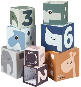 Done by Deer Stapelblokken Deer friends Colour Min./h3#Sluit je aan bij de Deer-vrienden voor speeltijd. Stapel de kubussen hoog op en kantel ze om, verstop kleine dingen erin en leer met plezier cijfers en tel mee, lees de verhalen en leer de zeven hertenvrienden kennen. De acht meerkleurige stapelkubussen van verschillende groottes zorgen voor leerplezier en zijn ook een decoratief element in de kinderkamer.Done by Deer Friends stapelblokken