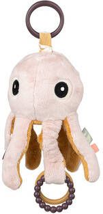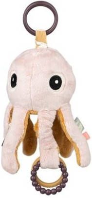 Laat nieuwsgierige ogen en kleine vingers de vele sensorische eigenschappen van Jelly ontdekken. Pak Jelly's zachte armen vast en hoor ze knetteren of trek aan de speelgoedlink bovenop en alles zal trillen. Voel de zachte textuur en ontdek de zoete spiegel die zich onder Jelly verbergt. Laat je kleintje verlichting vinden van jeukende tandvlees door op de ringen te kauwen, die ook stimulerende geluiden zullen maken. Kleine vingers zullen dol zijn op het verkennen van de kleurrijke tags en de zoete bel zal nieuwsgierigheid opwekken. Met de speelgoedlink kun je de schattige kwal aan b.v. een kinderwagen, wandelwagen, autostoel of box altijd binnen handbereik voor je kleintje. Activity Jelly heeft een zachte poedertint met contrasterende mosterd aan de binnenkant van de armen.