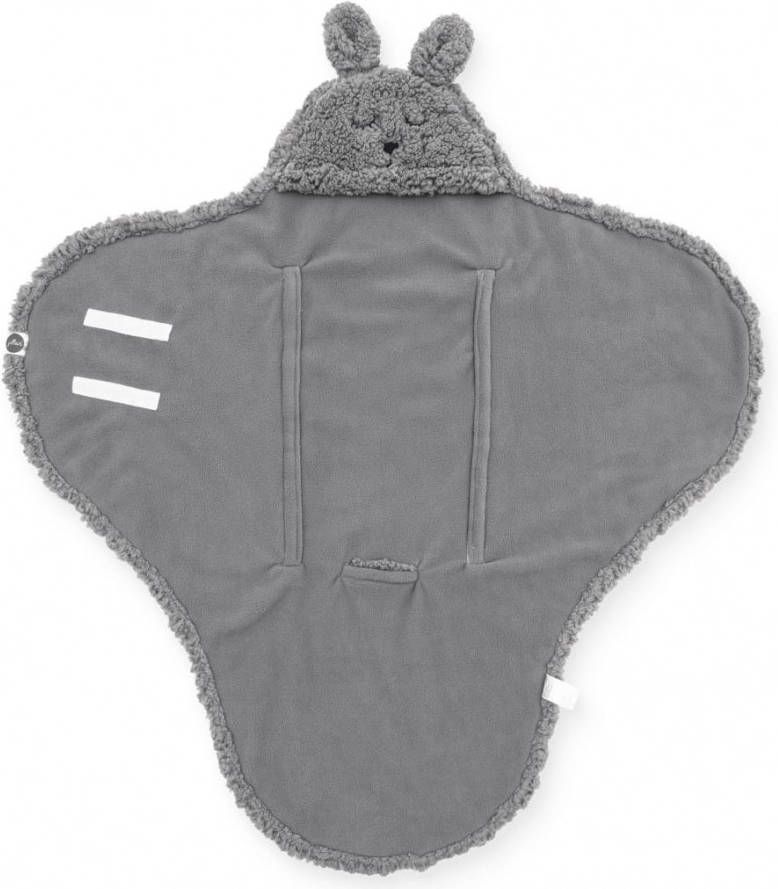 Leuke Jollein wikkeldeken met konijnengezichtje. De wikkeldeken is gemaakt van extra zacht berber fleece. De wikkeldeken heeft een extra openingen wat hem geschikt maakt voor een autostoeltje van 0-9 maanden. .