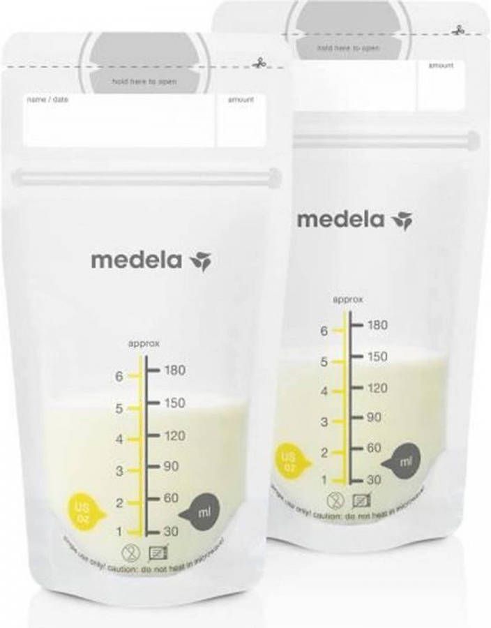 Hygiënisch, zeker, plaatsbesparend: Deze opbergzakjes blijven uit zichzelf staan, kunnen met een dubbele sluiting dicht gemaakt doen en zijn daarom ideaal voor het bewaren, transporteren en opwarmen van moedermelk. Met de moedermelk bewaarzakjes van Medela laat zich de moedermelk eenvoudig bewaren, transporteren en verwarmen. De verregelde zakjes hebben een anti-lek, dubbele sluiting, zodat geen melk verloren gaat. Door haar vlakke vorm kunnen ze bijzonder plaatsbesparend in de koelkast of diepvries worden bewaard en als het nodig is, snel weer ontdooit worden. Het extra grote schrijf-veld op het zakje zorgt voor overzichtelijke opslag. De zelfstaande bewaarzakjes hebben een inhoud van 180 ml en zijn gemaakt van BPA-vrij materiaal. Productdetails: Hygiënisch bewaren, veilig transporteren en eenvoudig opwarmen van moedermelk Zakjes kunnen hygiënisch afgesloten worden Plaatsbesparende opslag en snel ontdooien door vlakke vorm Anti-lek dubbele sluiting Dubbelwandig materiaal met warmtebestendige naden Groot veld om te beschrijven Transportzakje met gebruiksaanwijzing met plaatjes en nuttige tips. 180 ml BPA-vrij materiaal Meegeleverd: 50 moedermelk bewaarzakjes in praktische transportzak met handleiding.